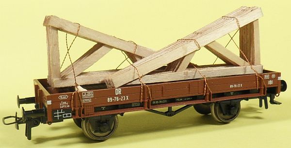 Fahrzeugtyp: Niederbordwagen Fahrzeugnummer: 89-76-23 Bahnverwaltung: DR Epoche: III Länge über Puffer: 106 mm Hersteller: Fleischmann Artikelnummer: 5702 Zusatz: Mit Dachsparren beladen. Größe: Nenngröße H0, Maßstab 1:87, Spurweite 16,5 mm 27.03.2013 |