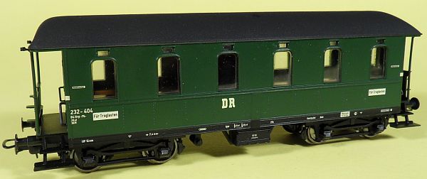 Fahrzeugtyp: Personenwagen Bauart Langenschwalbach Fahrzeugnummer: 232-404 Bahnverwaltung: DR Epoche: III Länge über Puffer: 143 mm Hersteller: Liliput Artikelnummer: 381902 Zusatz: 2.Klasse Größe: Nenngröße H0, Maßstab 1:87, Spurweite 16,5 mm 19.12.2013 |
